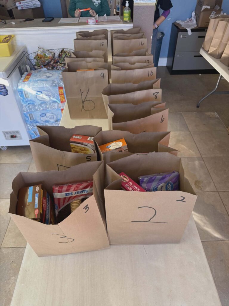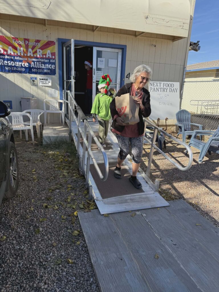 Pictures from our 2026 Thanksgiving and Christmas boxes. Not only did we have a special visit from Santa, we even had a special volunteer help load the boxes for our guests.
